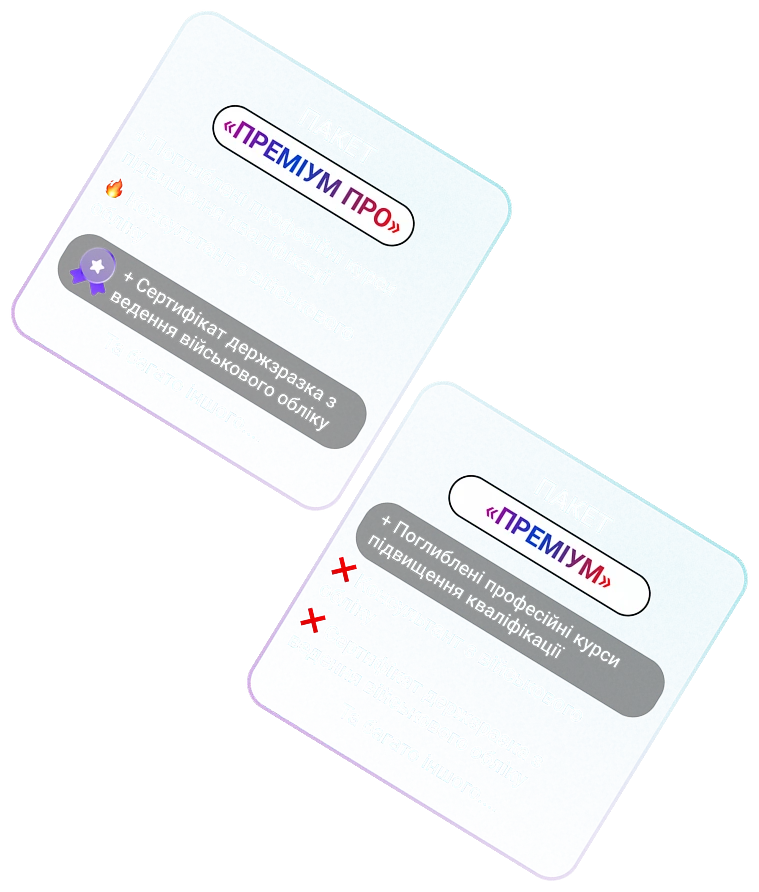 Короткі відеоуроки, домашні завдання, тести, що підвищать вашу кваліфікацію або допоможуть отримати нову професію. А працівники, які ведуть військовий облік на підприємстві, отримають сертифікат державного зразка від КАІ про завершення навчання за програмою погодженою Генштабом ЗСУ.