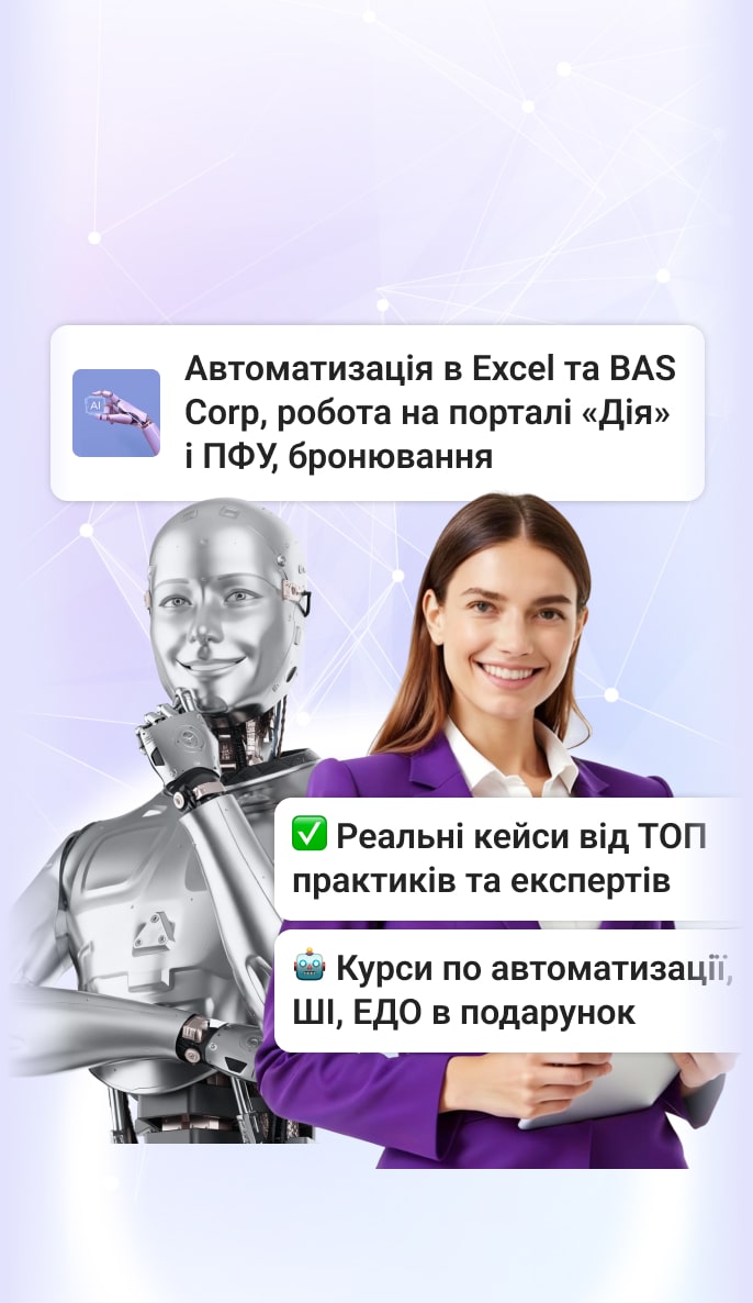 Бонусний курс «Автоматизація роботи сучасного кадровика: застосування ШІ, BAS Бухгалтерія КОРП, M.E.Doc»